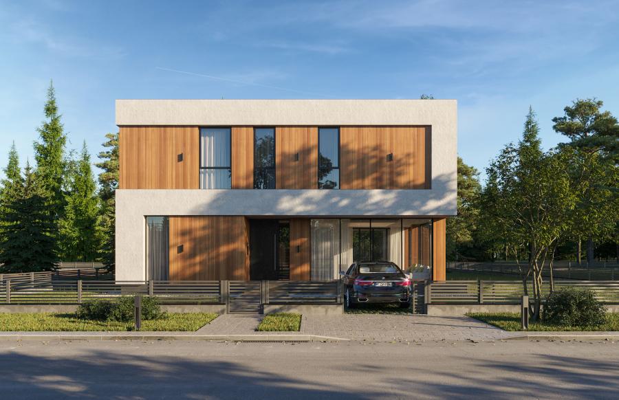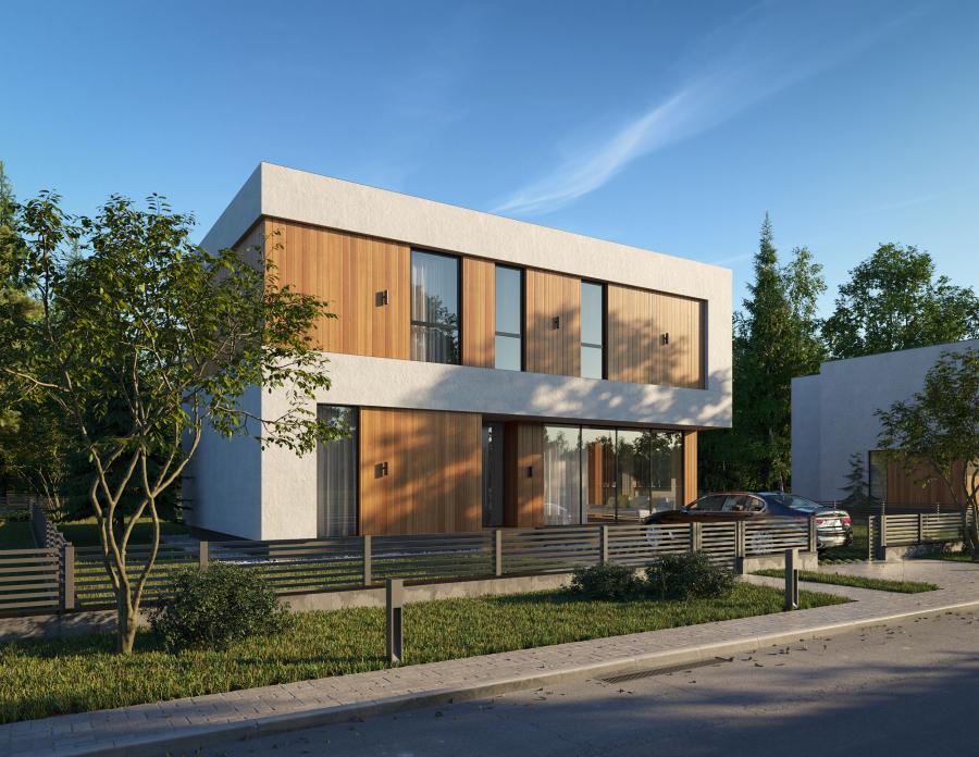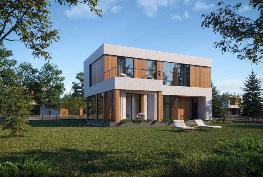 Благодаря тому, что дома оборудованы крупноформатными окнами, создается ощущение, что граница между домом и окружающей природой стирается. Пространство участка будто бы перетекает в дом, создавая ощущение безмятежности.