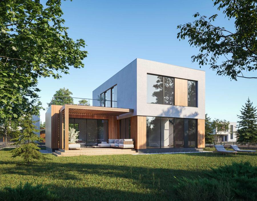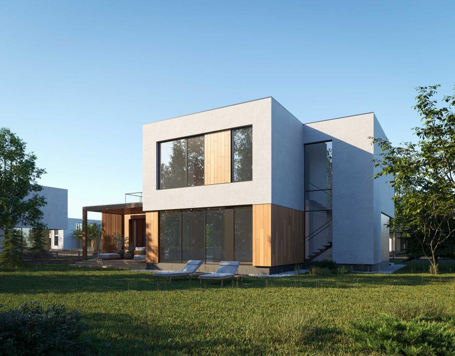 Благодаря тому, что дома оборудованы крупноформатными окнами, создается ощущение, что граница между домом и окружающей природой стирается. Пространство участка будто бы перетекает в дом, создавая ощущение безмятежности.